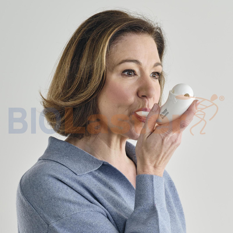 Al exhalar a traves de la boquilla, la bola de acero que contiene en su interior produce una vibración que ayuda a movilizar y a expectorar las flemas acumuladas en el tracto respiratorio.