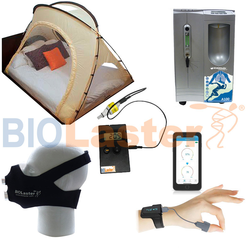 Il est composé de une Capsule d'hypoxie individuelle BioAltitude® + Generateur BioAltitude® A100 + Masque d’entraînement Biolaster + Oximétre de pouls BCOxygen Oxysleep