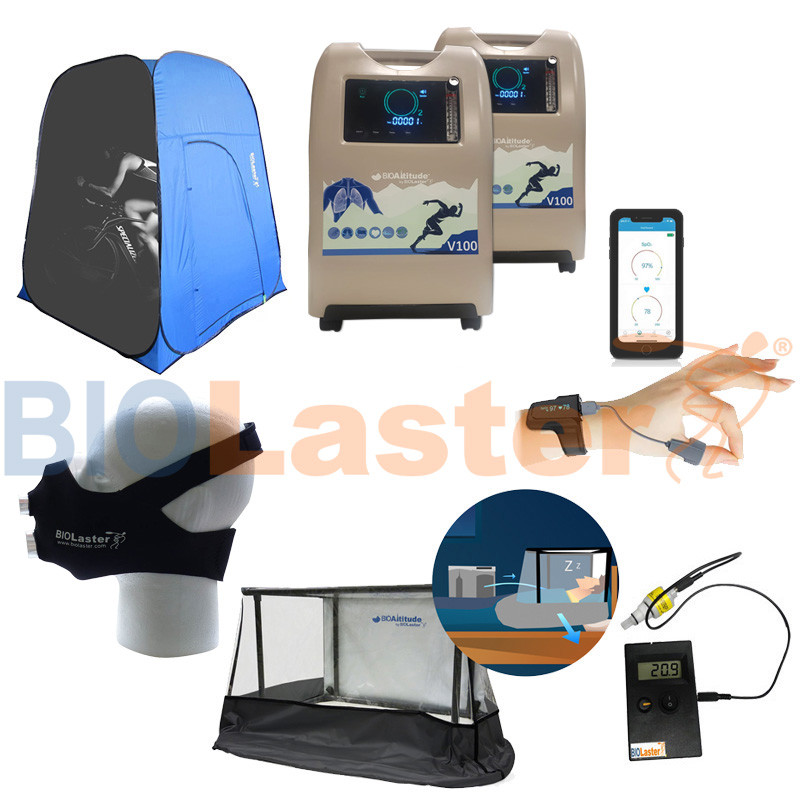 Il est composé de une Capsule d'hypoxie individuelle BioAltitude® + Generateur BioAltitude® V100 + Masque d’entraînement Biolaster + Oximétre de pouls BCOxygen Oxysleep